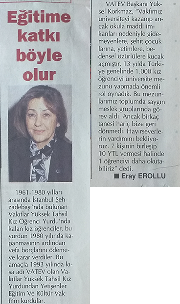 VAKIFLAR KIZ TALEBE YURDUNDAN YETİŞENLER EĞİTİM KÜLTÜR VAKFI